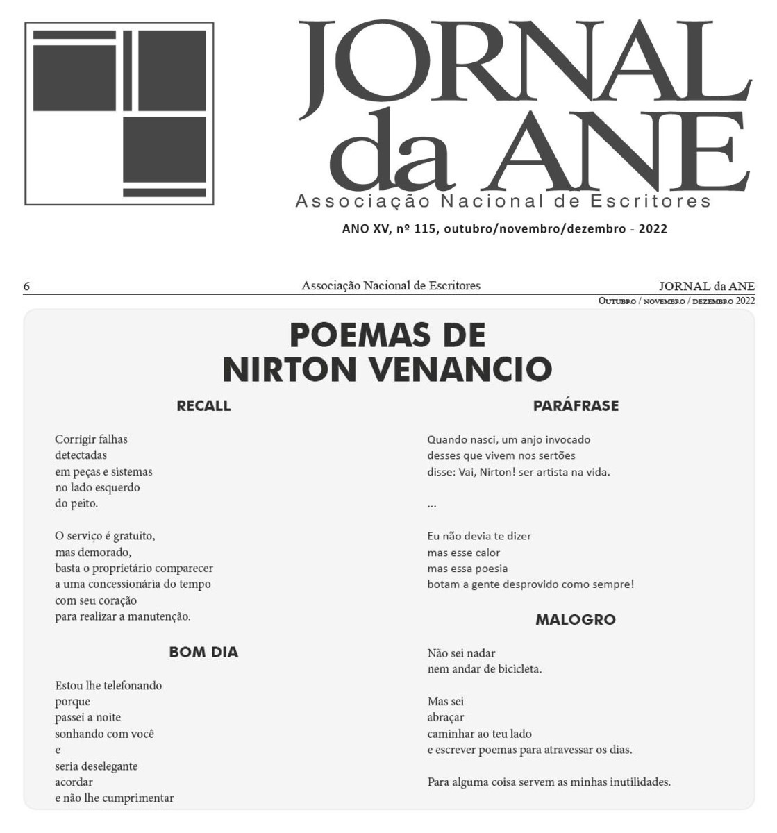 Esse trem poético de Nirton não para em nenhuma estação. Vai recolhendo da poesia brasileira e do cinema as referências que o seu inconsciente erudito e sensível sopra no seu ouvido. E retira de seu baú as joias da sua coroa particular e as expõe: